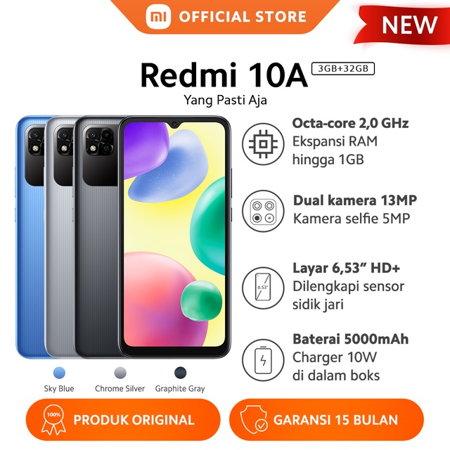 HP Xiaomi Redmi ram 3gb Harga 1 Jutaan yang terakhir adalah Xiaomi Redmi 10A 3GB/32GB. Lalu berapa harga pas dari HP Xiaomi Redmi 10A ini? Yuk, cek di bawah!